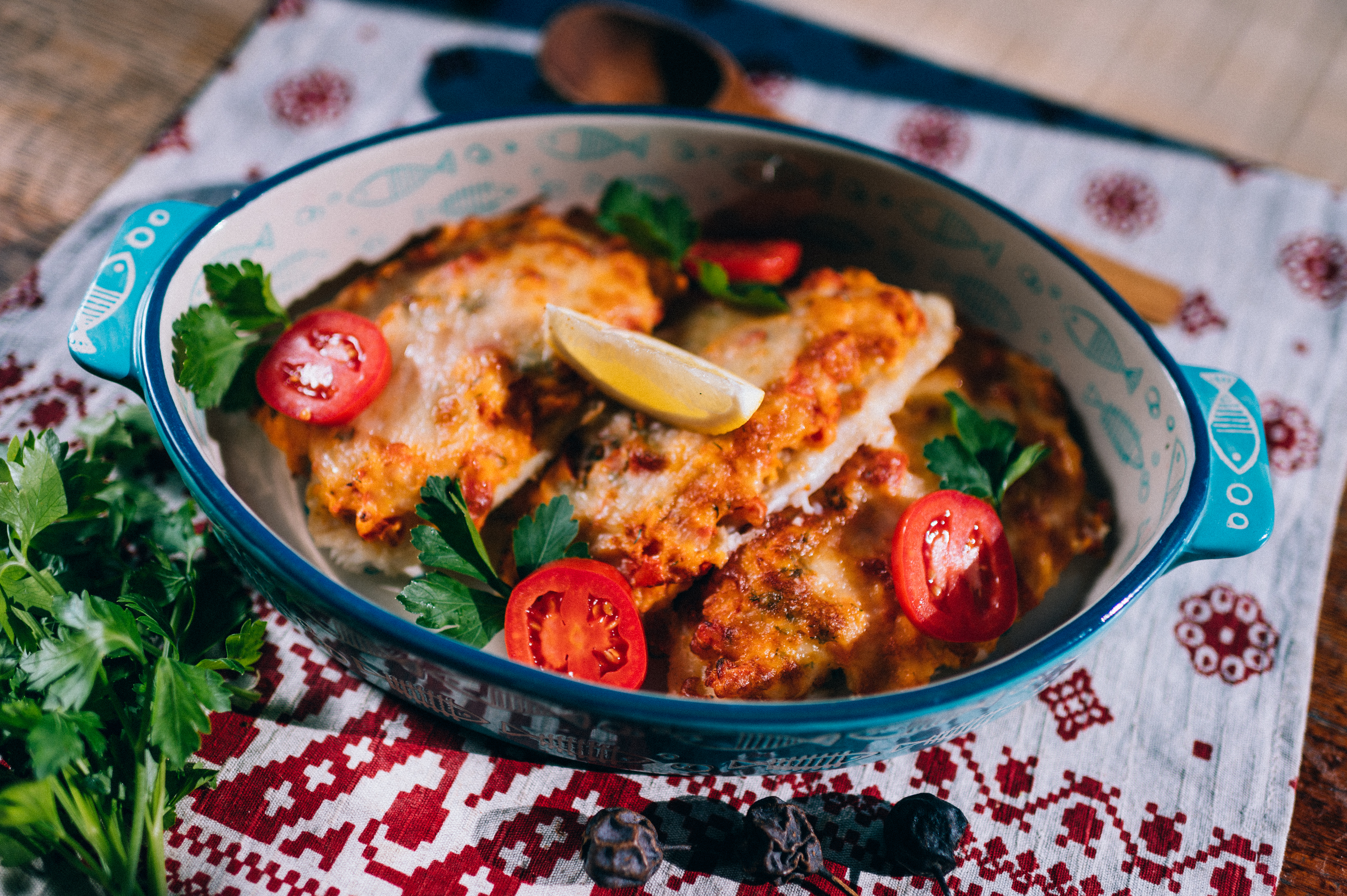 Тилапия с овощами под сыром